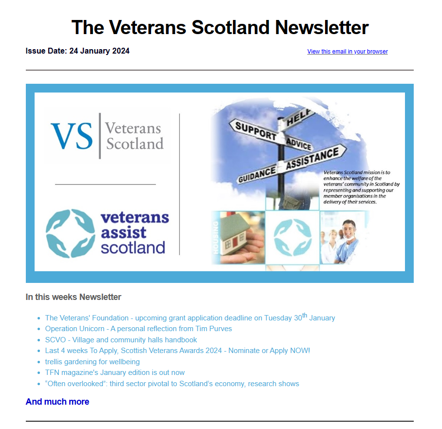 This booklet includes details of the Veterans Champions, who have been established across Scotland to ensure that those who have served are not disadvantaged as a result of their service. It also brings together a wide range of help available to both the Veteran Community and those supporting them, the majority of which is available via the Internet. It lists some but not all of the organisations that provide support and advice to the Veteran Community in Scotland. Additional information is available from the Veterans-Assist website.